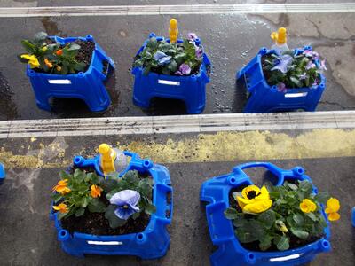 1年生は「一人ひとはち」で、パンジーとビオラのよせうえをしましたキラキラ