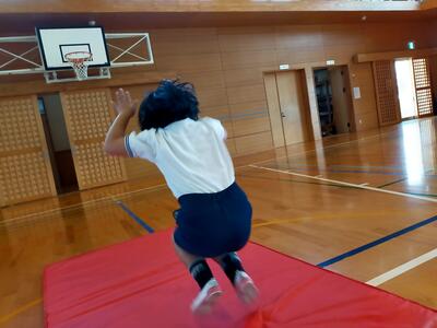 初めて長繩跳びをした子もいましたが、何回か練習するとコツをつかんだみたいです笑う