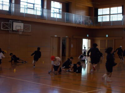 おにになる1年生、にげる6年生・・・。なかなかつかまりません心配・うーん