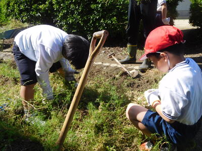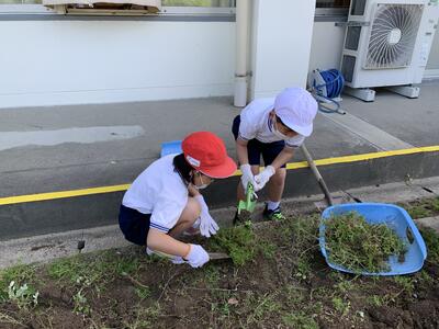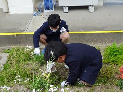 まず春休みの間にたくさん生えた雑草を抜いて、