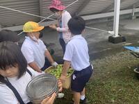 ちぎった梅を 水できれいに 一個ずつあらいました