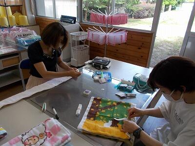 今回は、第1回に引き続き「タオルで防災ずきんを作りましょう!!」でした♪