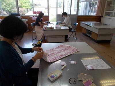 CS委員さんをはじめ、母親委員さん・一年生の保護者の皆様が子どもたちのために手縫いで防災頭巾を作ってくださいました。