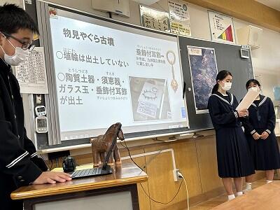 氷川町の魅力を中学2年生が小学生に教えてくれたCSの日「オータム交竜会」の授業の様子を学年ごとにお知らせします。1回目は6年生で行われた「古墳」授業です。6年生の教室では、東小地区にある「野津古墳群」についてくわしく教えてくれました。詳しい説明にクイズなどもあり、ちょうど社会の歴史で学んだことと重ねて、6年生も興味深く学ぶことができたようです。