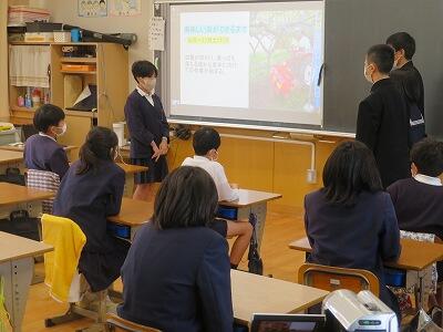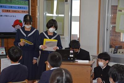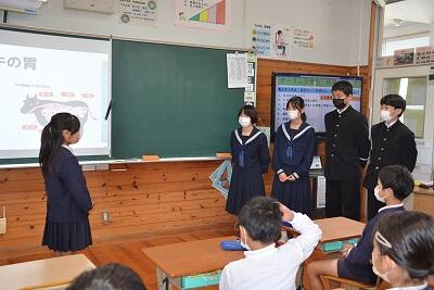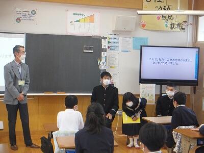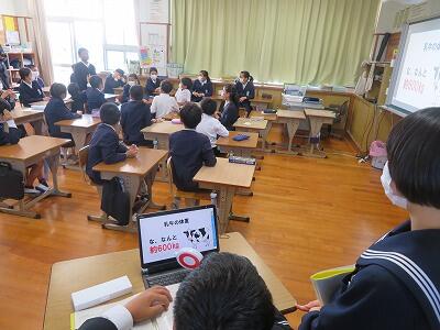 4年生で行われた中学2年生による授業は「酪農」に関するものでした。4年生がいろいろ関心を持って話が聞けるようにいろいろ工夫してくれたようです。4年生のみなさんに感想を聞きましたが、「中学生の発表がとても上手だった、自分も中学生になったら、あんな発表をしてみたい!!」と答えた人が多かったです。すごいね~。