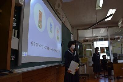 中学生が、らく農について教えてくれました!牛の胃袋は、4つある事など、牛の体のことまで調べてクイズにしてきてくれたのでとってもわかりやすかったです。他にも牛の歴史などの話もがありました。自分も牛を見てかんさつしてみたいな~と思いました。どの牛にゅうが一位かのなどの問題をクイズにしてきてくれたので牛の事と、らく農のことをたくさん知ることができたし、楽しかったです。だから私たちも、中学生の質問に出来る限り、答えられるように頑張りました。みんなも楽しそうに答えていました。