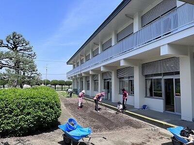 本日は午前中からお昼にかけて、地域活動協働本部の方々やご協力いただける地域の方々がたくさん来ていただいて、学級園を耕してマルチを張ったり、花の苗を準備して花壇の準備をしたりして頂きました。