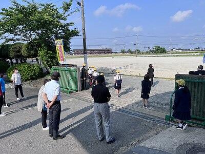 毎月15日は、あいさつ運動一斉行動の日です。本日は副町長様、CS委員、PTA役員の皆さんも参加いただいてのあいさつ運動でした。いつもよりたくさんの人に迎えられて子供たちもちょっとびっくりな感じもしつつ、元気なあいさつを返してくれました。