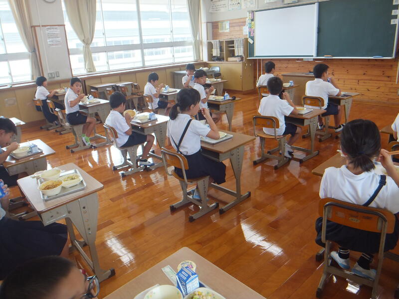給食の時間は、新型コロナウイルス対策で2つの教室に分かれて食べることに…。