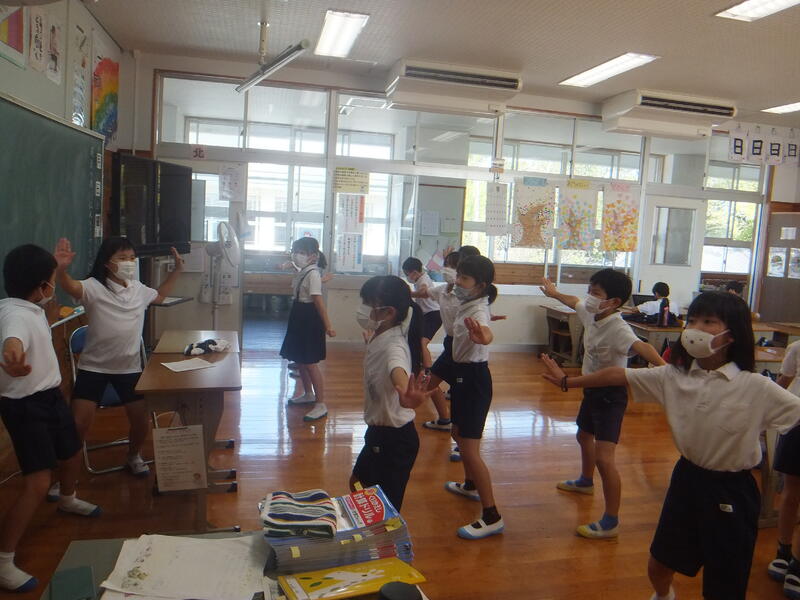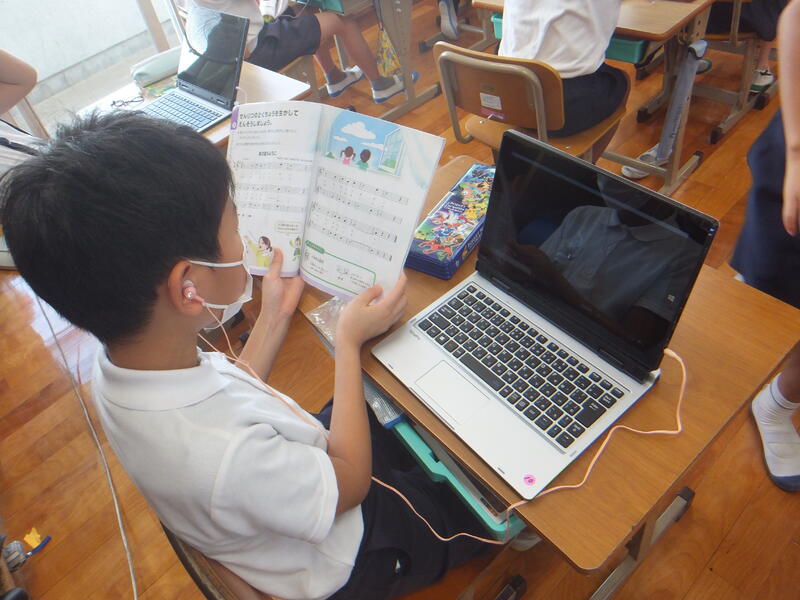 音楽では、「あの雲のように」という歌を歌っています。リコーダーや鍵盤ハーモニカのパートがあるのですが、コロナ対策で使えず・・・。