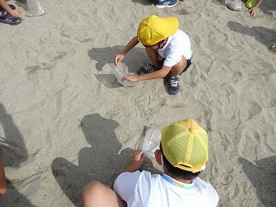 砂場で、何度も何度も調整しながら、みんなでチャレンジ!!しっかり予想して取り組みました。