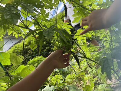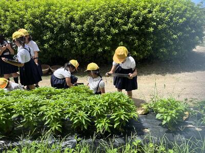 「季節と生物(夏)」の学習で、今まで育ててきたホウセンカやツルレイシの成長の様子を観察してまとめました。