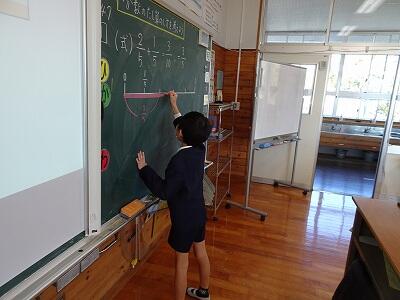 写真は、ちょっと前の授業から。タブレットで操作しながら分け方を説明する3年生。
