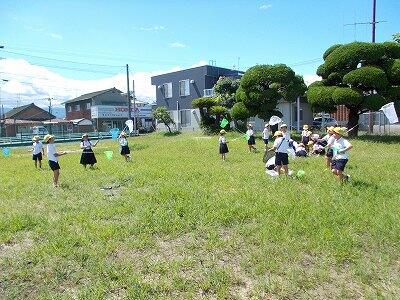 とってもいい天気で、子どもたちは うんどうじょうや 木の近くに さがしに行きました