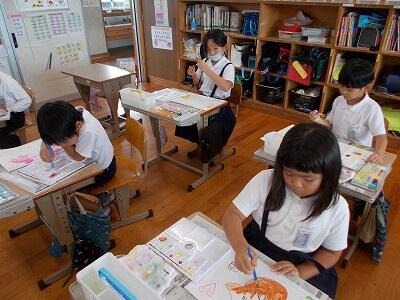 きょうは、えのぐのつかいかたの べんきょうをしました