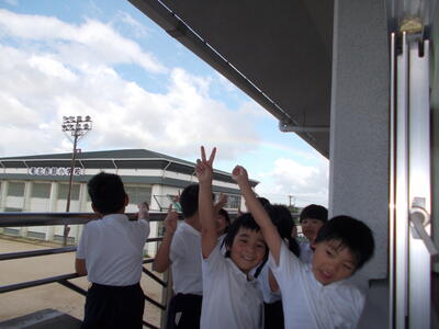 きょうしつに行くと、「先生、にじ出てたよ」「きれいだった~」とたくさんの子どもたちが 教えてくれました。