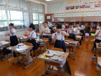 さんすうでは、「水のかさ」の学しゅうをしています。