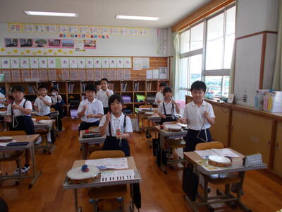 おんがくの学しゅうでは、カスタネット・タンブリン・すず・ウッドブロックなどの がっきをつかって、2びょうし・3びょうしの リズムのれんしゅうをしています