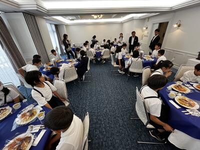 ホテルに到着後、とりあえず部屋に入りました。ややみなさん興奮気味です。このあと食事です。