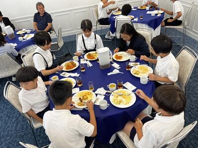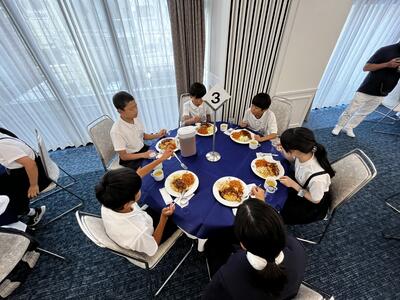 昼食はトルコライス、美味しそー、うまーいの声もたくさんでしたが、完食、なかなか食べ切らない、な感じで進んでいます。とにかくお腹はいっぱいですね。