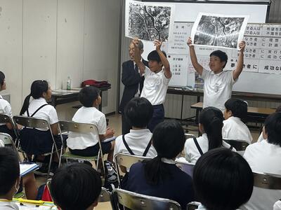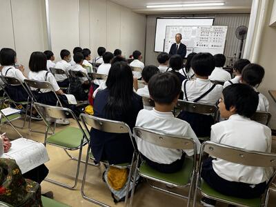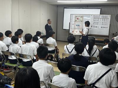 昼食のあとは講話を聴きました。みんな真剣に1時間聴くことができました。3歳の時に被爆された講師の先生のお話です。わかりやすくお話しして頂き、子供たちも戦争や原爆のことを、しっかり想像して聴くことができました。