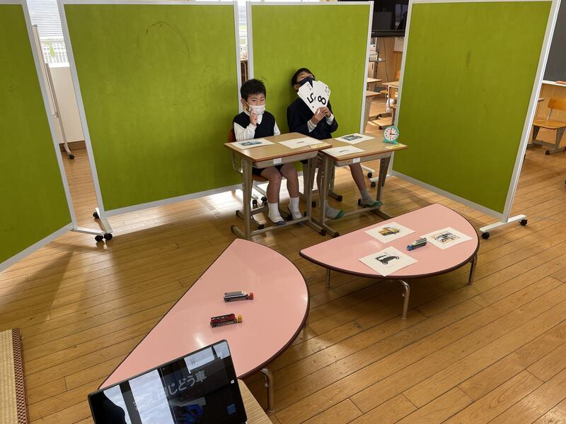 1年生の国語の学習で「ものの名まえ」の学習をしました。ものには、一つ一つの名前とまとめた名前があることを学びました。学習のまとめとして、大好きな車の名前を集め、自動車屋さんをすることになりました。早く学習が終わった5年生も店の看板をタブレットで作ったり、お店のレイアウトを作ったり、手伝ってくれました。ちょっとお店っぽくなったかな?