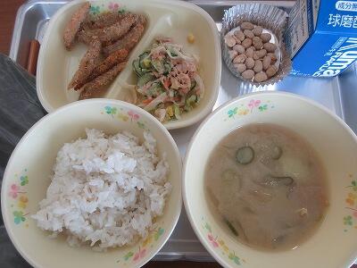 今日もおいしくいただきました。今日のメニューは、おいしい焼き海苔にごはんと小イワシやサラダを巻いてたべるセルフおにぎりorセルフ恵方巻きでした。みんなうまく工夫して巻いていました。