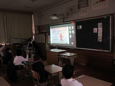 今日は、朝の児童集会で体力向上委員会の発表でした。給食週間に合わせて、食べ物クイズをしました。給食によくでてくる「トマト」「ニンジン」「ピーマン」についてのクイズです。放送室からオンラインでの発表でしたが、各教室から盛り上がる声が聞こえてきて、委員会の子どもたちも嬉しそうでした。