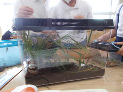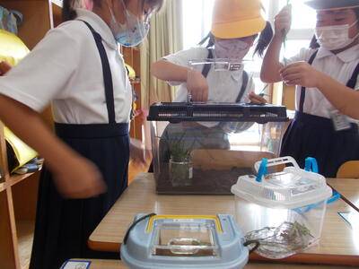 むしを入れるときに、おおさわぎ…いや、たのしそうでしたが、ぶじにむしたちもおうちへ入りました。