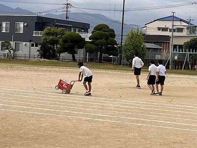今日は(昨日もですが)、体育委員さんが運動場にトラックの線をしっかり引いてくれていました。休み時間もなくなりますが、お陰で色々な活動ができます。