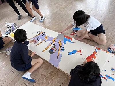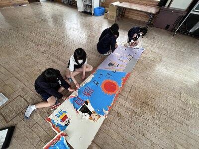 6年生は運動会に向けて、いろいろ仕事もたくさんです!今日から運動会のテーマを大きな看板にする作業も本格的に開始しました。