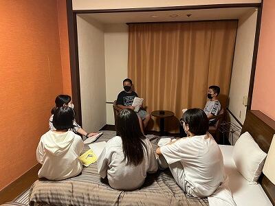 そして、ホテルではお風呂、ふり返り、班長会議とすごして、22時消灯、静かになったそうです。