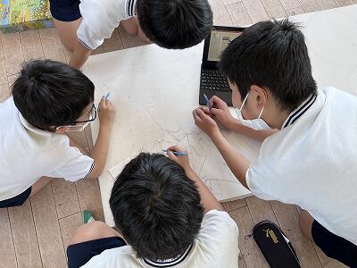 看板の板にきれ~に紙を貼って、下書きを始めました。細かく細かくこだわって描いています。・・・・ま~こだわるのはいいけど、あと1週間で完成するようがんばろう!