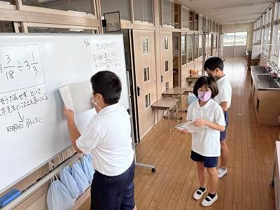 6年生は分数の計算の学習に取り組んでいます。今は分数のわり算で、いろいろな組み合わせの計算をしています。