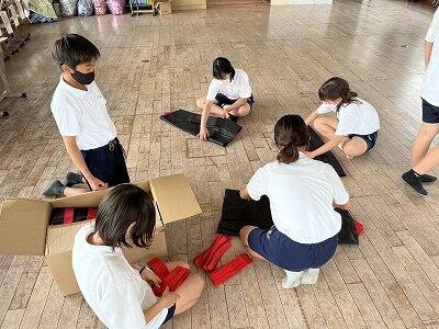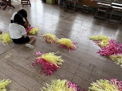 ぽんぽんづくり。そして練習で使った法被は最後にきれいに畳みます!運動会などの行事ごとは大変なところもありますが、そんな中で子どもたちはいろいろな経験をして成長します!6年生がんばれ~。