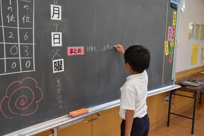 学習でわかったことの「まとめ」を考えて、自分の言葉でまとめることに頑張っています。まとめ方もどんどん上達しています。「すごい!!!」