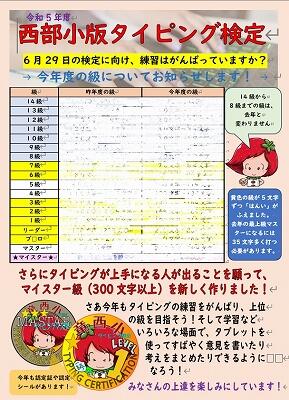 昨年度から実施している「西部小版タイピング検定」。今年度もバージョンアップして今月からスタートしました。タブレットを使った学習には必須のタイピング、自分を表現するためにも大事なスキルです。本校では独自の級を設定してタイピングのスキルを磨く取組として行っています。1回目の今日は4年生以上で行いました。