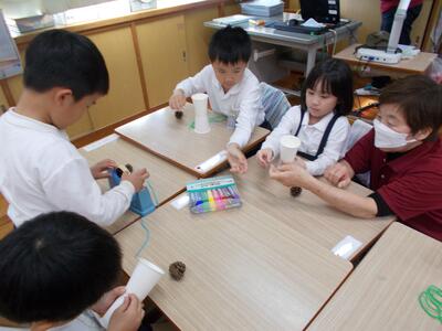 1ねんせいは「まつぼっくりけんだま」をつくりました