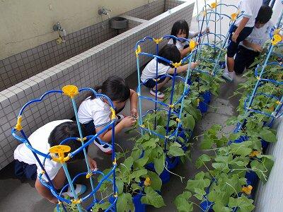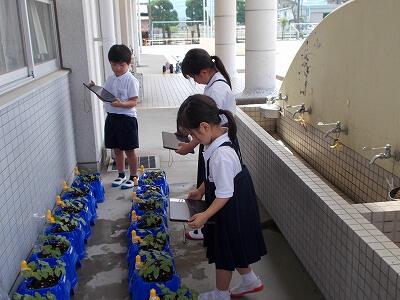 みんな毎日、水やりのお世話も一生懸命やっていますはやく、お花が咲くといいですね