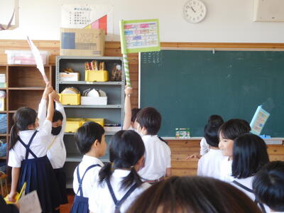 学校たんけんが おわると まるくなって ふりかえり