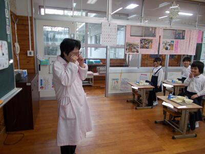 1年生は、とくに きゅうしょくの先生に まい日おせわになっているので、ちょくせつ お手がみを わたしました