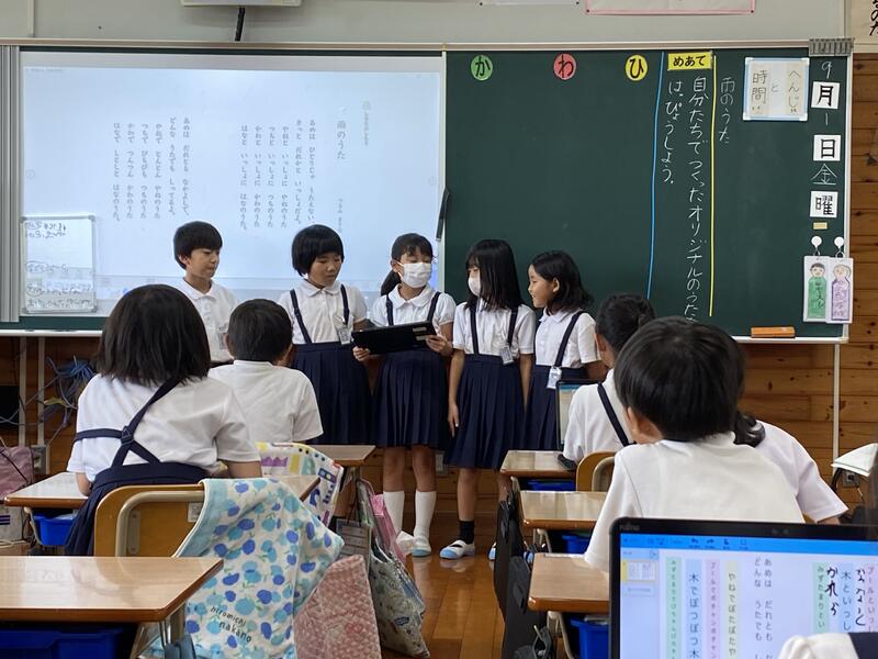 今日は、自分たちで作った「雨のうた」の発表会でした