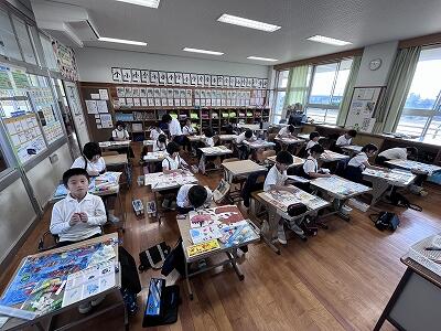 今日は3・4時間目は図工で感想画を描きました。そして5・6時間目は書写で「曲がり」の学習で「元」という字を書きました。芸術の秋にふさわしい時間割でした。