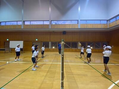宿泊教室、夜はナイトゲームが中止となりました。代わりに体育館でのバレーの開始です。