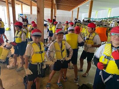 宿泊教室のメインとなる活動でもある「ペーロン」にのる活動が無事できたようです。きのうの雨からかなりのいい天気になりました。