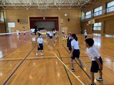 3時間目に体育館に行くと、5年生が体育でバレーをしていました
