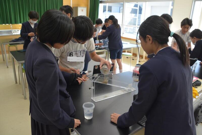 「土地のつくりと変化」の学習で、地層のでき方の実験をしました。