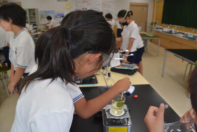 「植物の成長と日光」の学習で、日光が当たると葉にでんぷんができるかどうかの実験をしました。