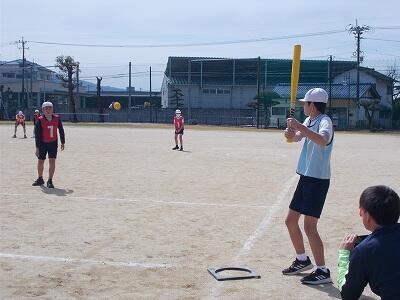 卒業式の練習や準備で忙しい毎日ですが、体育ではソフトベースボールをがんばっています。