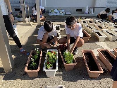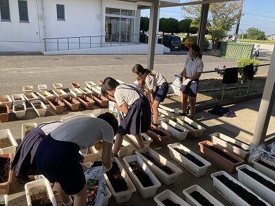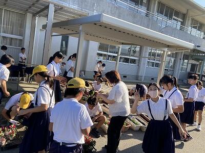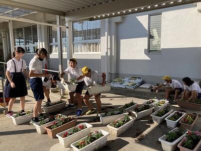 朝はみんなで、昼と放課後はボランティアで植えてくれました